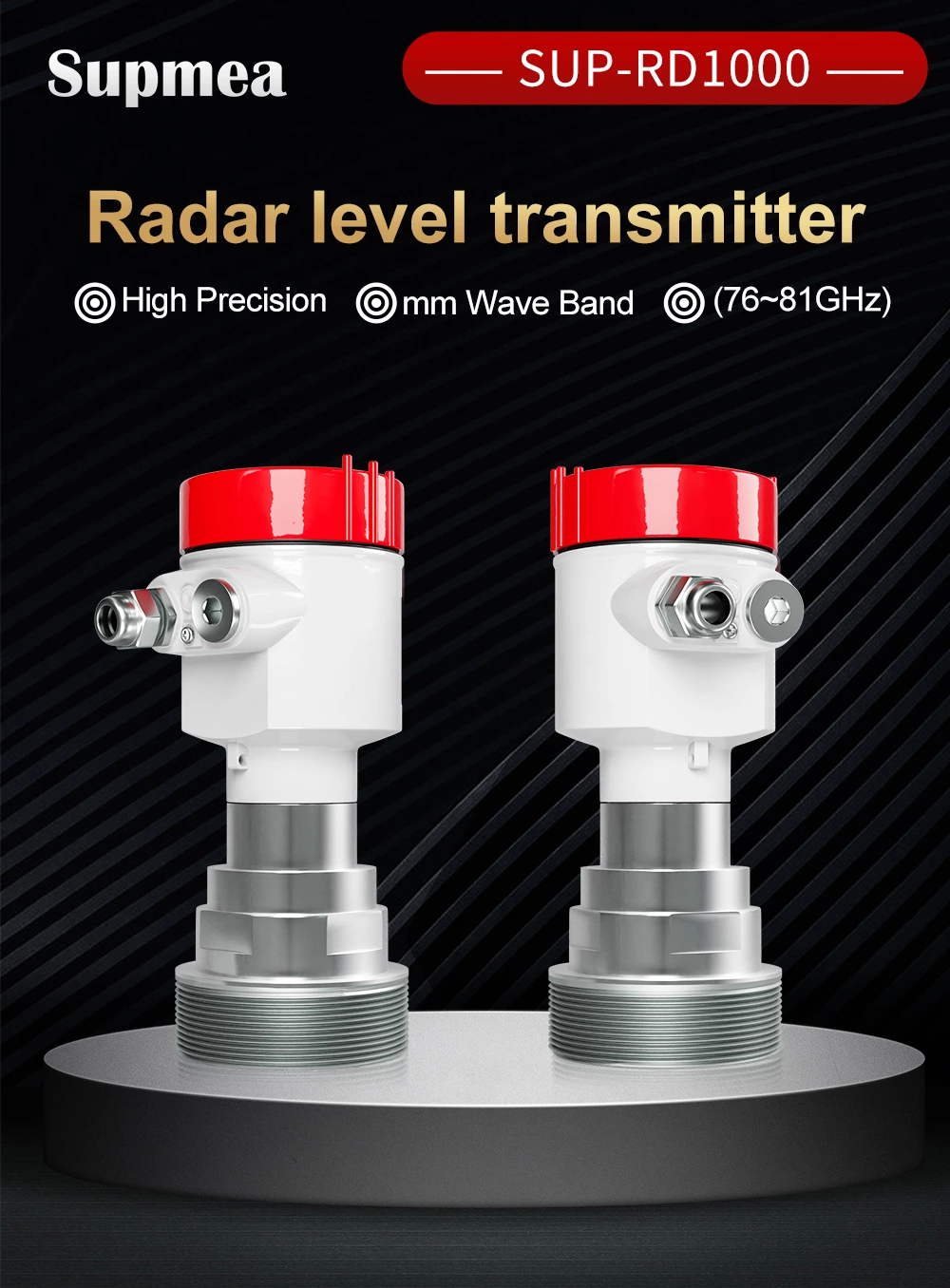 SUP-RD1000 80GHz Radar level meter uses the millimeter wave band with a higher frequency than the Ku-band radar. It has important applications in long-distance target detection, strong smoke and dust environments, long-distance imaging, multi-spectral imaging, etc.And it can detect smaller targets and achieve more precise positioning than microwave radar, with higher resolution and stronger secrecy.